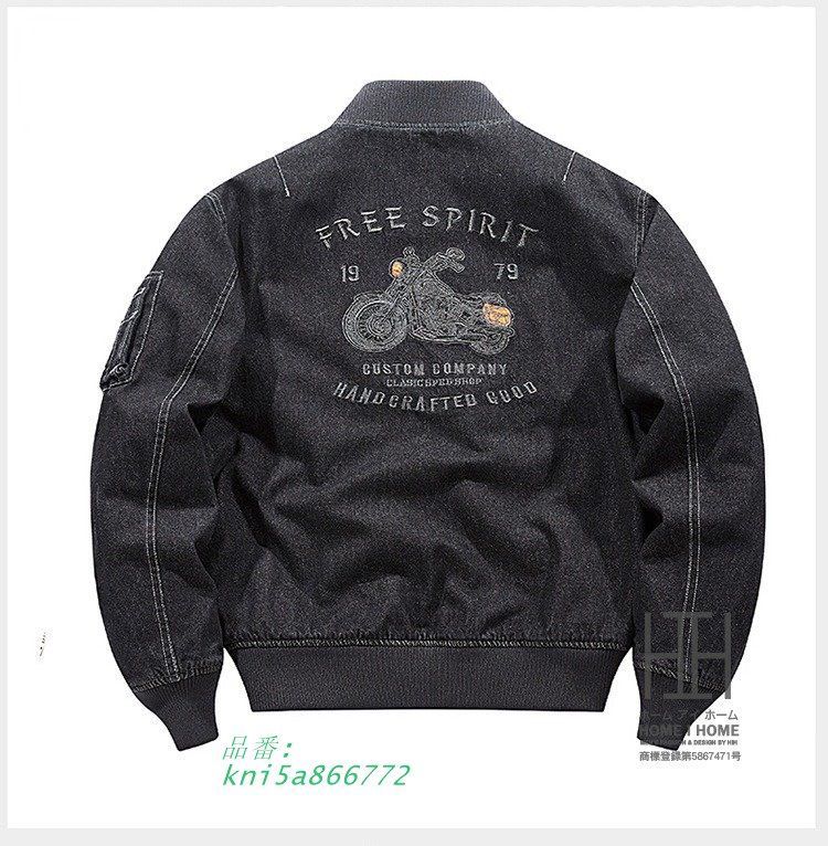 デニムジャケット メンズ スタジャン MA1 ユーズド加工 刺繍入り ワークジャケット