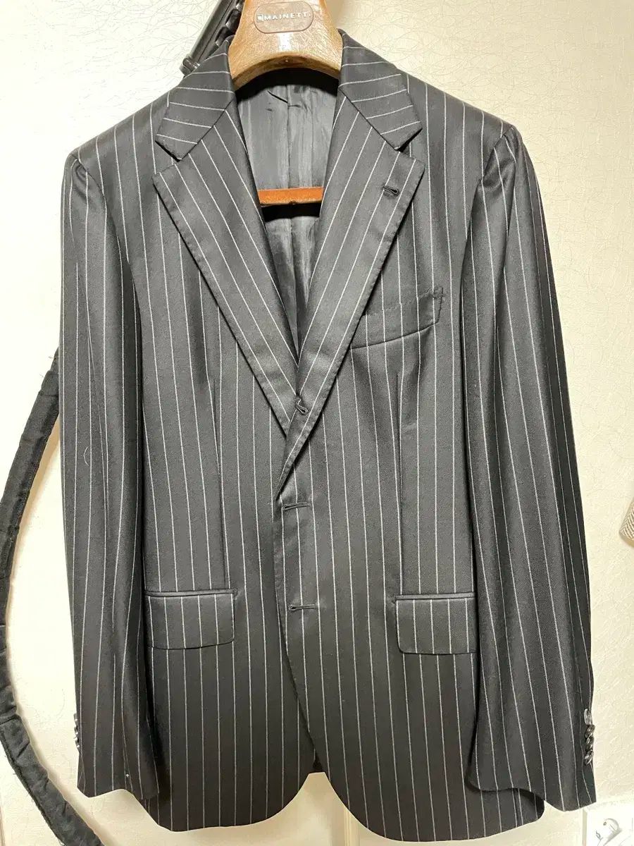 これはアンドレア・ソウル・カーサ・デル・サルトの黒い縞模様のスーツです。これはイギリス製の豪華なブラックレーベル製品です。配送は無料です。ご不明な点がなければ、すぐに安心してお支払いいただけます!