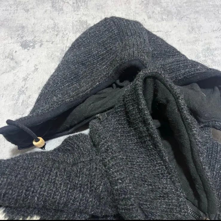 ニット フーディ ジップアップ パーカー フリース フード取外 ウール 肉厚 ニットジャケット